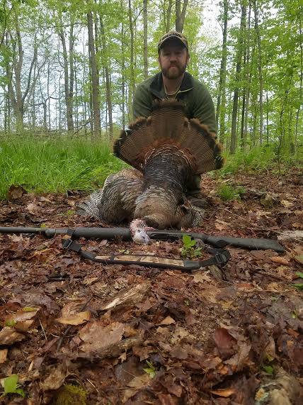 Then, as it often does, it all came together with a little luck. I had positioned myself in a wooded hollow with fields above and below me. At first light, at least three gobblers were sounding off about 300 yards to my left and a very distant one to my right. I dropped down to a horse trail and did a loping jog down the trail, pausing every so often to hear the birds. They had flown downhill off the roost. Like stalking a whitetail, I made my way across the hill until they were directly beneath me. Still out of sight and over 100 yards away, they were near an opening above one of the dirt roads that intersects these woods. I picked out a good tree. If the birds came up the hill, they would be within shooting range by the time they were in sight. I yelped a few times and got some answers, but could hear hens down there too. I expected this would be a familiar story. But then I could hear a vehicle coming up the dirt road. As it neared, it slowed to a stop and I could hear the alarmed “putt putt!” as the turkeys ran away from the truck… up towards me! The truck drove away after a few moments and I waited a few minutes for the turkeys to calm down. After a couple minutes of silence, I slid myself up the tree and could make out the shapes of more than a dozen turkeys on the bench below me. I let out a few very soft yelps. Minutes passed. The rustling of leaves below me got closer. I positioned my gun accordingly. I gave a few more yelps and let a few more minutes pass. The rustling got so close, I felt they had to be right on the sidehill between the benches. Then finally, a big red head appeared, closely followed by two more. The first bird must have caught the little bit of movement as I put the bead on his head because he stood up very tall and turned sideways to look my way. But by then I’d already noted the necessary beard protruding from his chest, centered the bead and KABOOM! I appreciate the tranquility of the sounds of spring, but shattering it with the blast of a shotgun on a turkey is better than the crack of a rifle in the November deer woods. At the shot, he tumbled over and flapped a few times. I was up and running, making sure he wasn’t going anywhere. Finally, after all the early mornings of slipping out long before light, and trying not to awaken a grumpy wife next to me. After all the trial and error and close calls, I was holding my first turkey. He was not a trophy by size. But by appreciation, he could have made boone and crockett. A big jake. His round spurs were about 3/8 of an inch and his beard was 5 ½ inches, which I’m told is above average for a jake, so I’ll take it. But more than inches, was the beauty of these birds up close. Every feather was a work of art. The way the wings and tail spread. The colors of the head. I can’t get over them. I propped my phone on a rock, set a timer for the camera and took some in the field pictures. I snapped several angles of him as well. I make the victory walk home and my three year old was equally enamored. Little boys look at their daddies like superheroes on days like that. He wanted the details in the form of endless 3 year old questions. (Often the same questions got cycled through 3 and 4 times over.) I felt mixed accomplishment and remorse butchering it. I am not uncomfortable taking the life of an animal that is to be eaten, or to better manage land. But the butchering was the last step. The bird would be gone and the memories put in the past. The meals would be great, but the beauty of the wild turkey wouldn’t be there to look at anymore. And the following morning, I would have no reason to set an alarm. So naturally, I was already looking forward to next year.